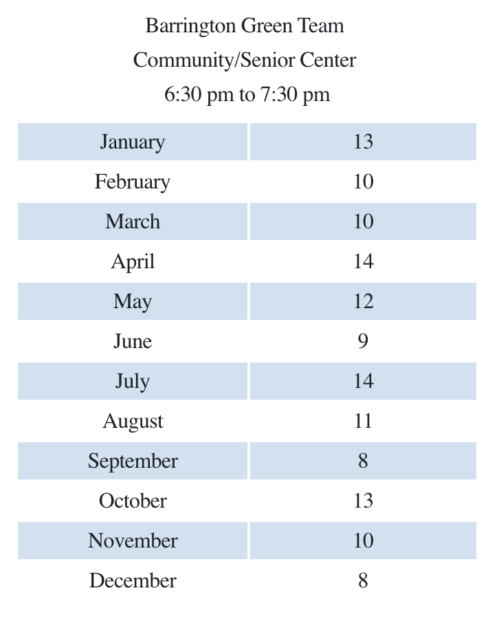 Green Team meetings will be held on the 2nd Floor of the Municipal Building from 6:30 pm to 7:30 pm.